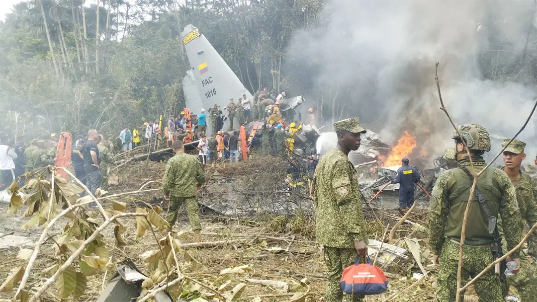 কলম্বিয়ার দক্ষিণপশ্চিমাঞ্চলে উড্ডয়নের কিছুক্ষণ পরেই দেশটির সামরিক বাহিনীর একটি কার্গো পরিবহন বিমান বিধ্বস্ত হয়ে কমপক্ষে ৩৪ জন নিহত হয়েছেন। বিমানটিতে মোট ১২৫ জন যাত্রী ছিলেন।