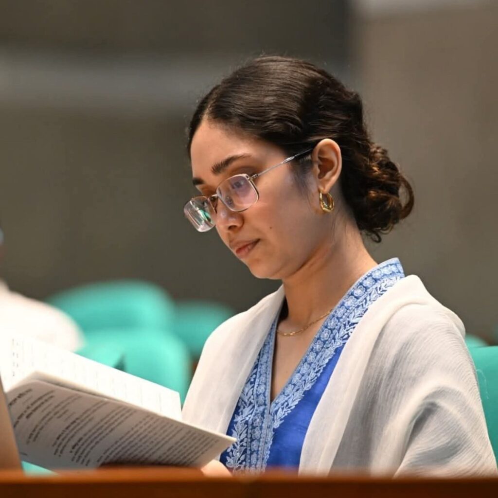ভিভিআইপি লাউঞ্জে বসে সংসদ অধিবেশন পর্যবেক্ষণ করেছেন প্রধানমন্ত্রী তারেক রহমানের কন্যা ব্যারিস্টার জাইমা রহমান।